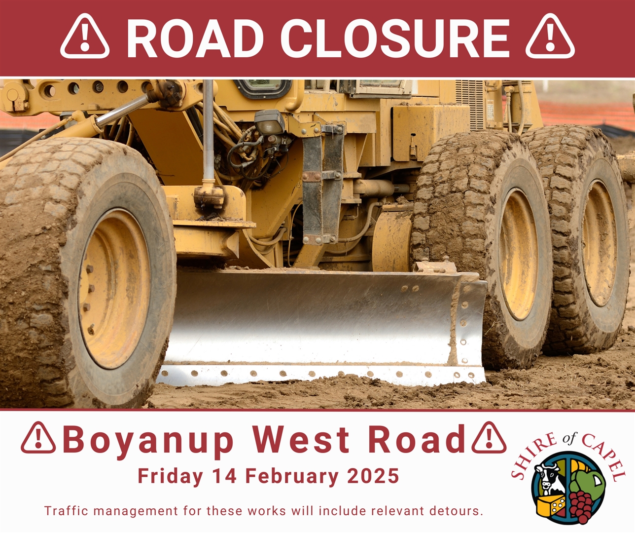 Residents, please be aware that a section of Boyanup West Road will be closed on ๐๐ฟ๐ถ๐ฑ๐ฎ๐, ๐ญ๐ฐ ๐๐ฒ๐ฏ๐ฟ๐๐ฎ๐ฟ๐, ๐ณ๐ฟ๐ผ๐บ ๐ฒ๐ฎ๐บ ๐๐ผ ๐ฒ๐ฝ๐บ for the delivery and installation of an oversized Headwall.